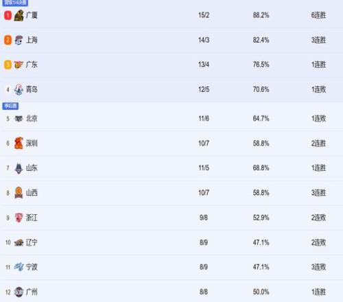 CBA第17輪結(jié)束,排在第一的還是廣廈,目前他們已經(jīng)保持了六連勝,球隊(duì)狀態(tài)與傷病情況都非常良好。上海則保持了三連勝,他們鞏固住了第二的位置,緊咬廣廈?,F(xiàn)在李添榮恢復(fù)不錯(cuò),復(fù)出后他們的實(shí)力會(huì)更強(qiáng)。廣廈和青島全部都輸球了,但還是可以穩(wěn)住三四名。只是目前廣東內(nèi)線與徐杰的隱患還是太大了,青島本賽季保持驚喜發(fā)揮,球隊(duì)的攻守化學(xué)反應(yīng)都不錯(cuò)。