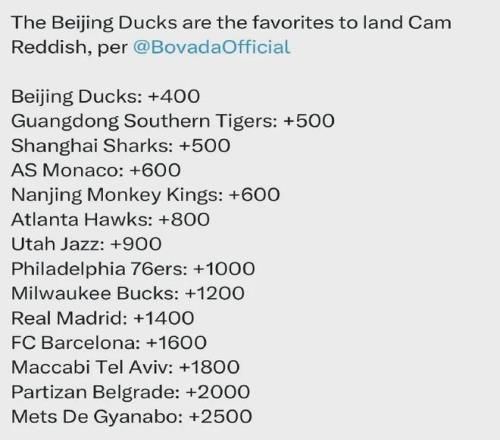 去年初曾有美媒預(yù)測(cè)了雷迪什新下家賠率,竟然是北京隊(duì)、廣東隊(duì)和上海隊(duì)分列前三,具體如下:
