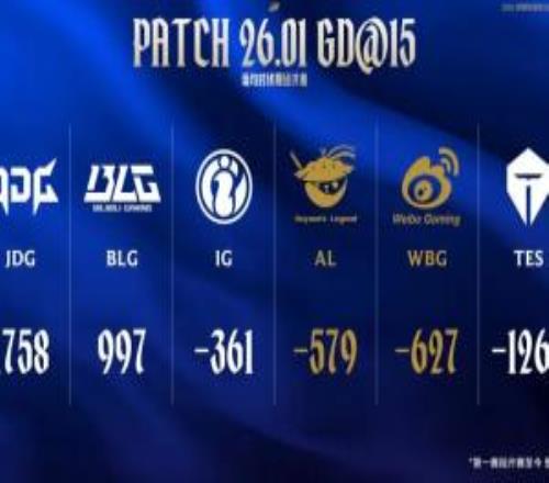 官方發(fā)布登峰組6支戰(zhàn)隊場均對線期經(jīng)濟差:JDG排名第一