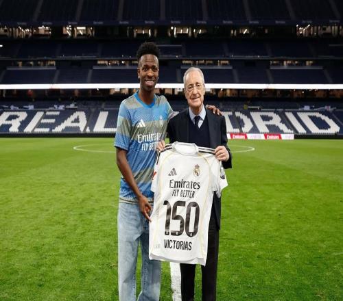 收獲西甲生涯第150場(chǎng)勝利,維尼修斯獲贈(zèng)紀(jì)念球衣